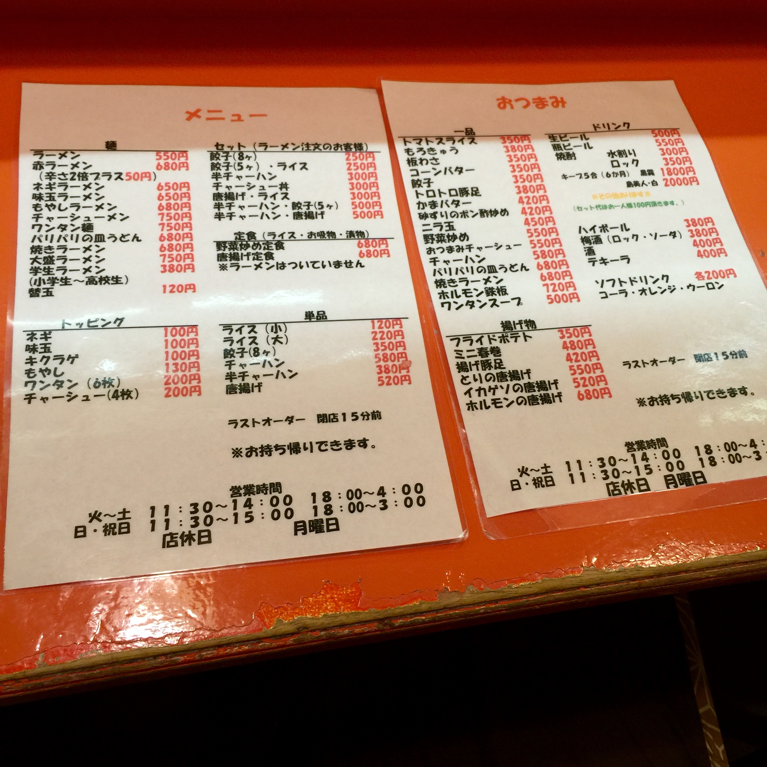 因みにメニューです